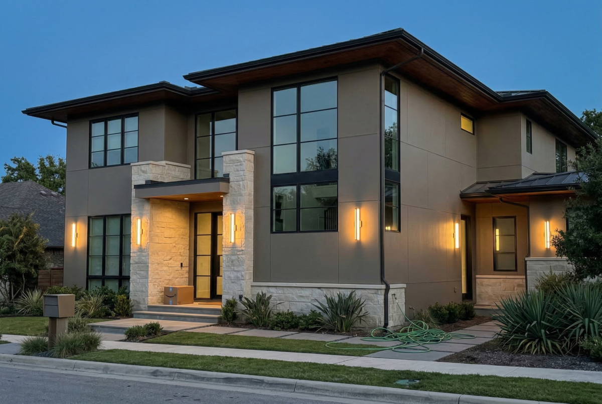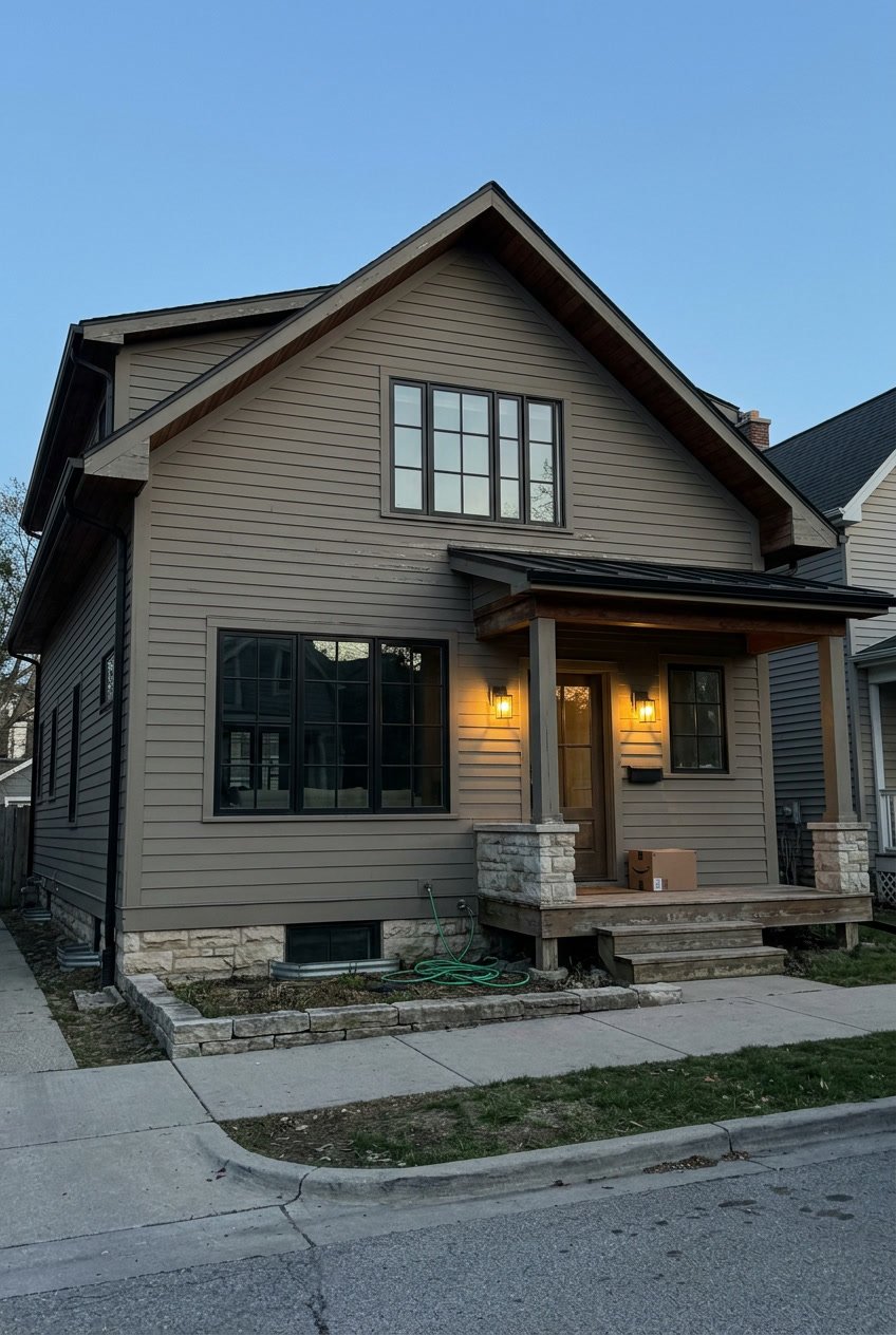 South-facing exteriors will show more warmth, while north-facing sides may appear cooler and more muted. This variation adds depth and keeps the exterior from looking flat. Pair Anonymous with a white like Extra White for trim, gutters, and fascia to create clean lines.