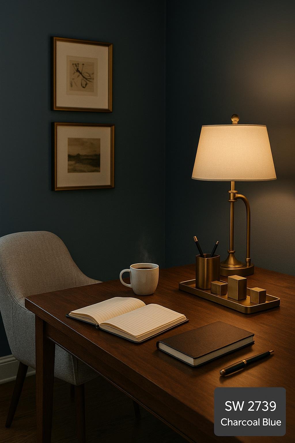 Charcoal Blue helps you focus in a home office without making it feel cold. It’s professional but not stiff.