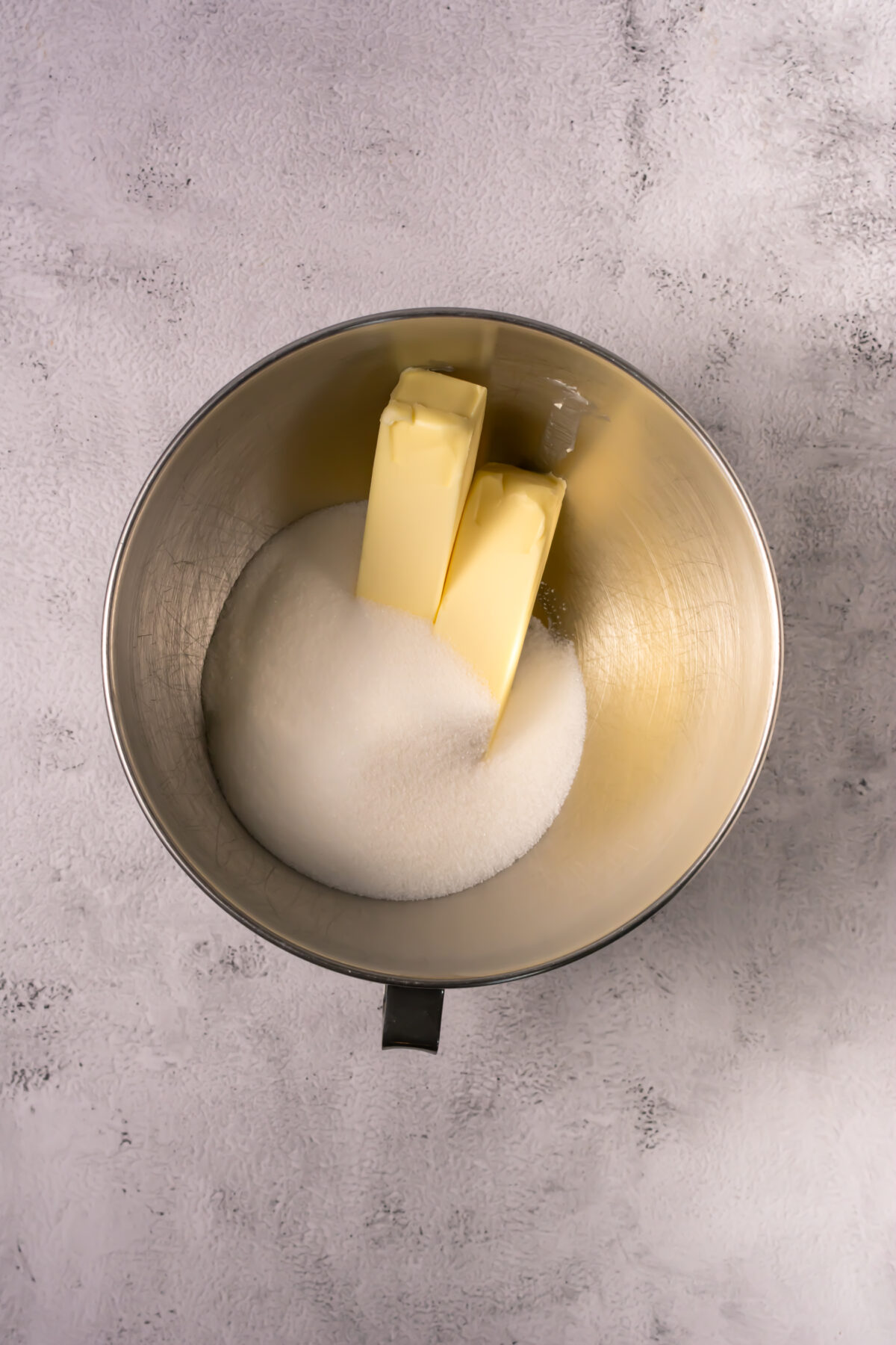 2. In the bowl of a stand mixer, cream together the butter and sugar until smooth and creamy.