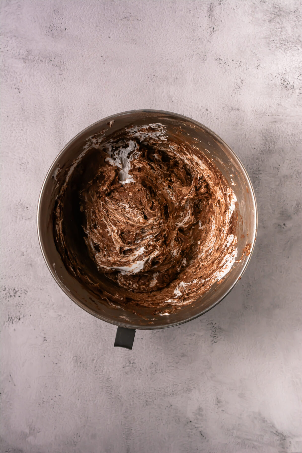 5. Fold in the marshmallow fluff just until evenly distributed. Do not overmix.