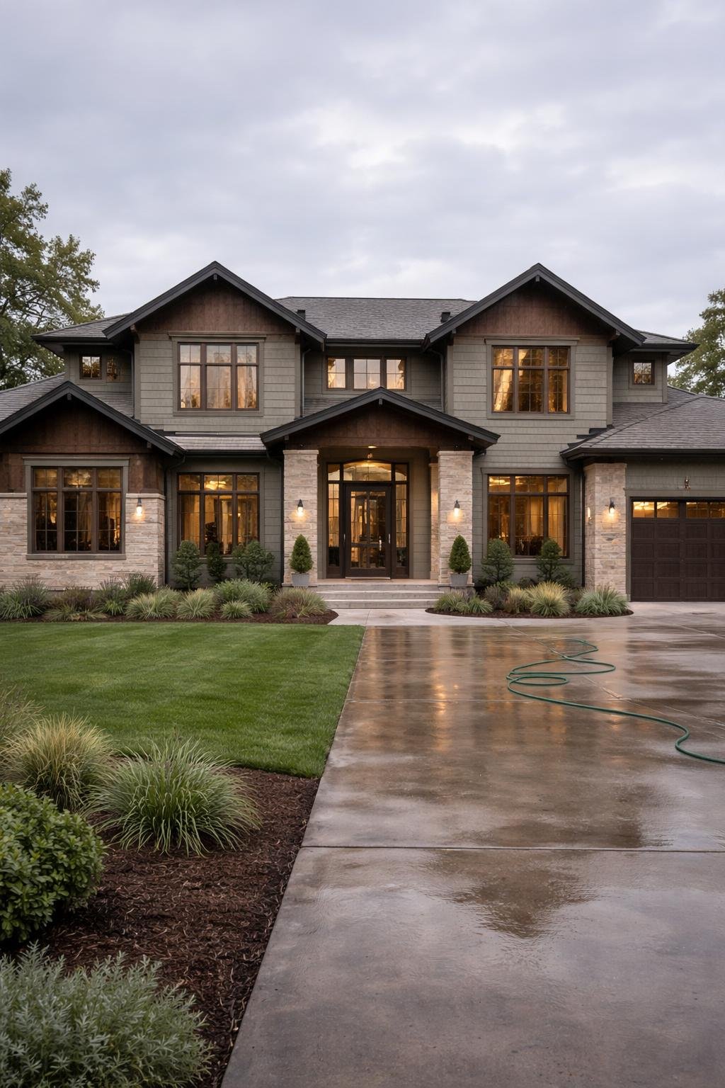 You can coordinate your door with natural elements like stone planters or wood accents. Escape Gray also complements dark green shutters if you want a cohesive exterior palette.