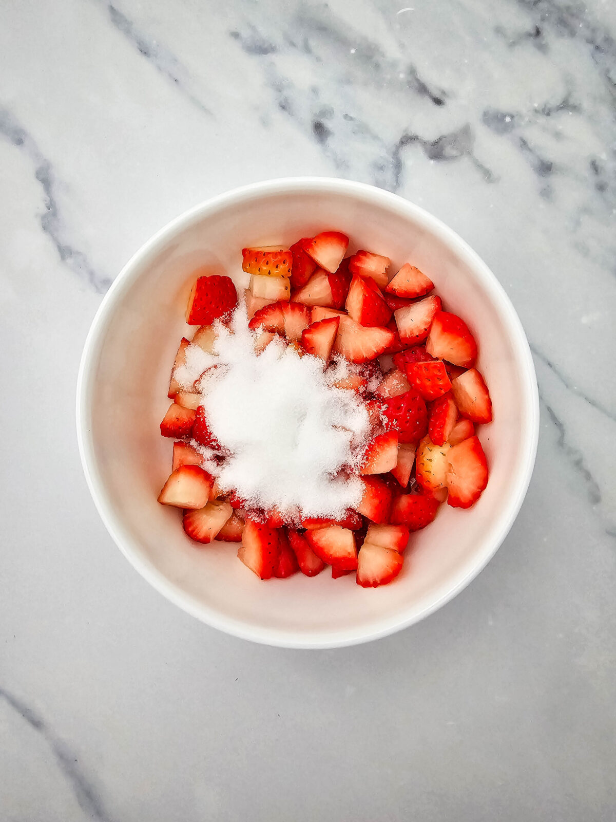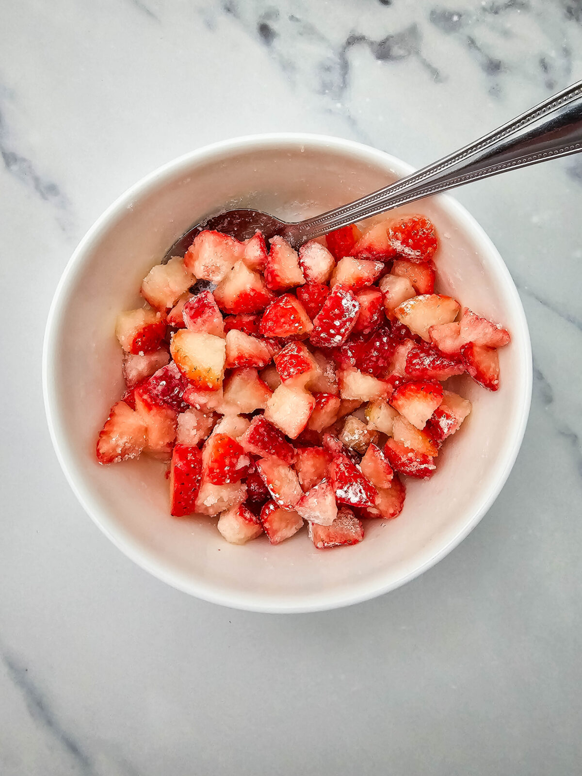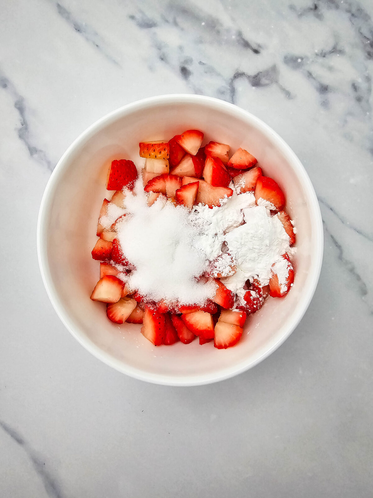 3. In a small bowl, mix together the diced strawberries, sugar and corn starch. Set aside.