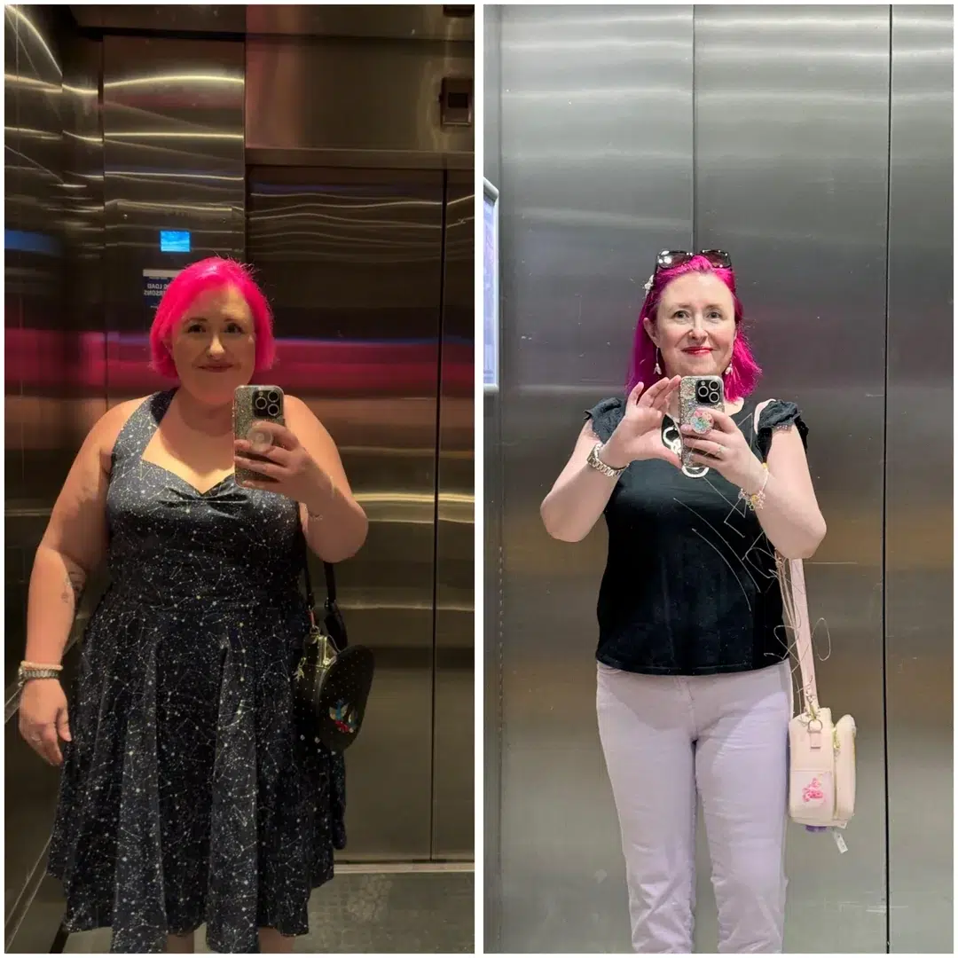 She looks like she lost the weight in all the right places, revealing a much leaner face and a flatter midsection. This kind of transformation is perfect for people who are just looking to get over that final hump and reach their goal weight. She looks more energetic and ‘awake’ in her after photos, which is a common result of improved metabolic health. She didn’t need a massive number to achieve a massive improvement in her quality of life and her appearance.