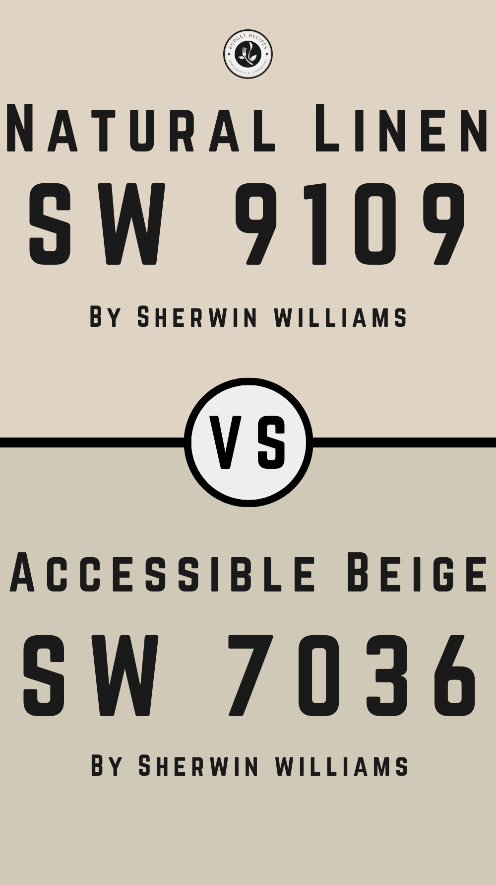 Natural Linen SW 9109 is a soft, warm beige with just a hint of a gray undertone. Accessible Beige SW 7036, on the other hand, is a greige color, which means it mixes gray and beige tones.