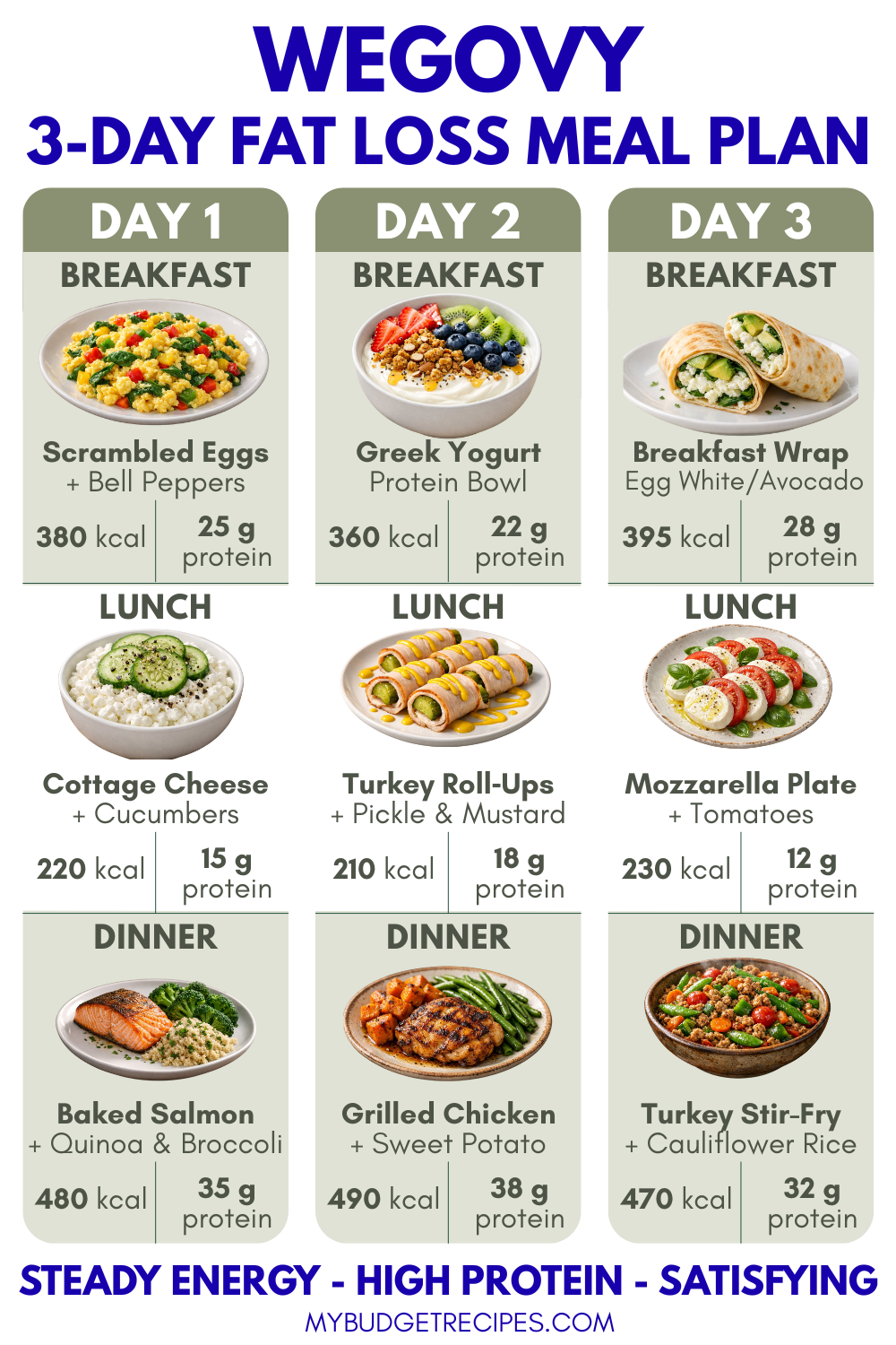 This 3-day meal plan shows you exactly what to eat on Wegovy, with balanced meals that are easy to digest, help manage side effects, and support your weight loss goals.